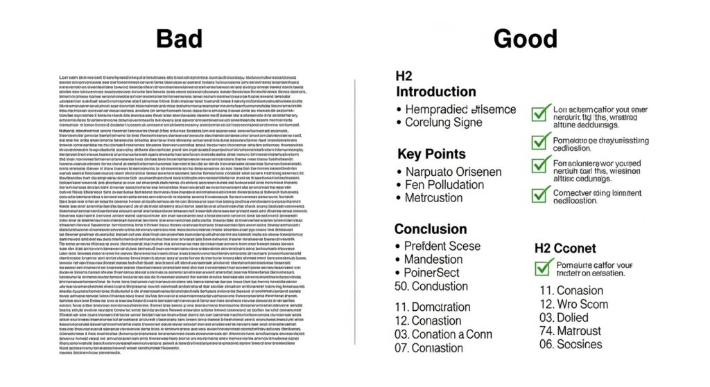 - Сканируемость: подзаголовки, короткие абзацы (до 3-4 строк), маркированные списки.